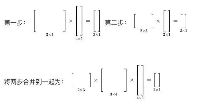 通过以上形式,我们可以发现如果将一个列向量经过多次线性转换,他的顺序应该是从右至左的顺序。这就是标准的线性代数书中所讲到的连续线性变换的形式,从右至左也是线性代数数学家习惯的顺序。