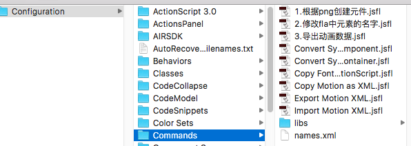 - Mac:~/Library/Application Support/Adobe/[Flash CS+版本号]/[en_US或者zh_CN]/Configuration/Commands