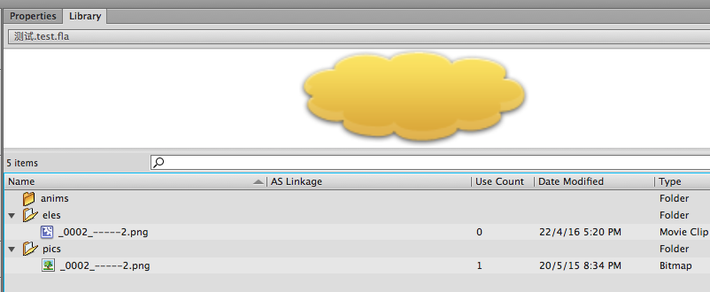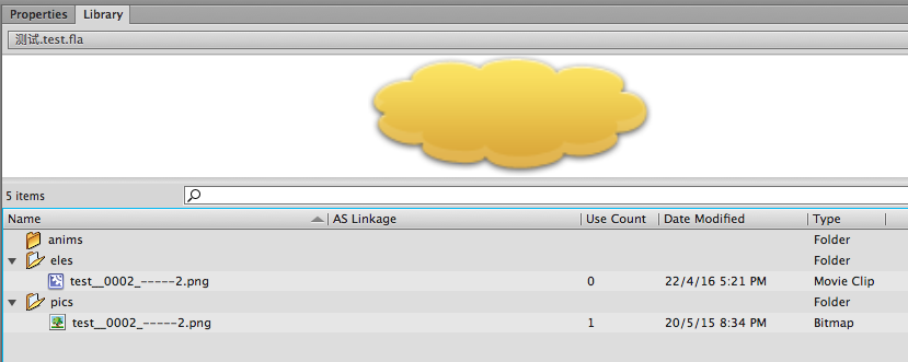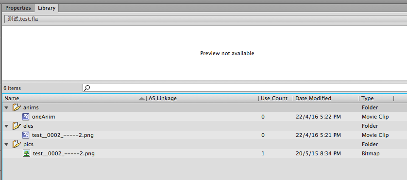 iOS可能也有此问题。因为直接拖入xcode中的文件一般选择“create groups”,这个只是逻辑文件夹,如果其他文件夹内存在同名文件则会冲突。所以最好每次制作动画,添加png图片的时候,都执行一次脚本“2.修改fla中元素的名字“。