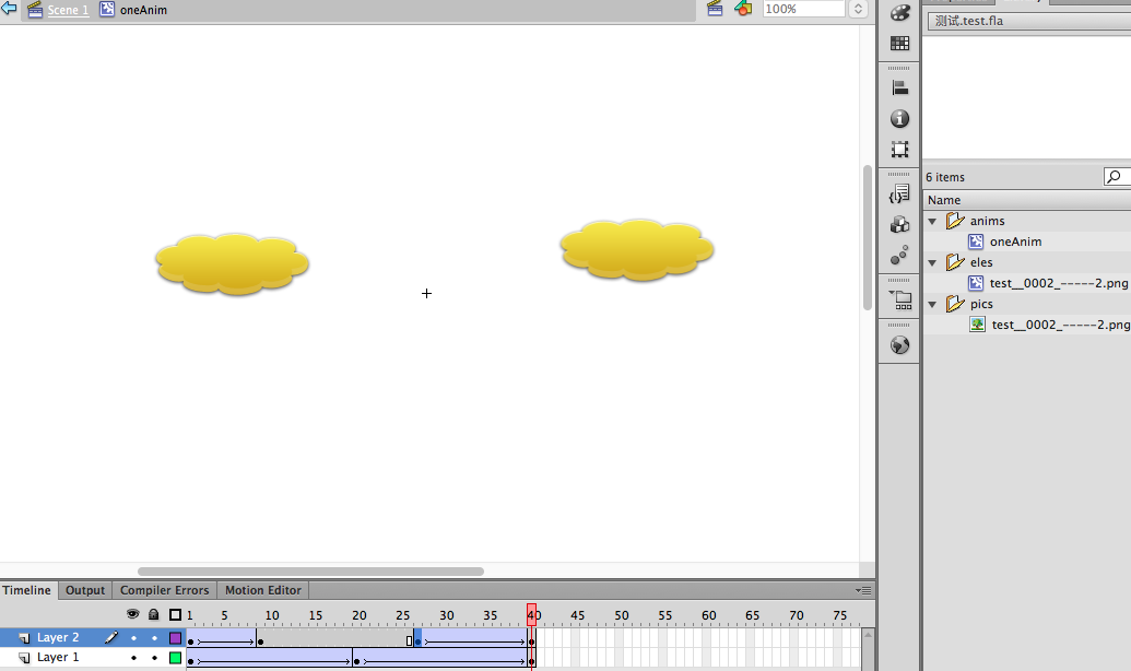 双击该Movie clip,进入编辑模式,此时就可以使用eles文件夹中的Movie clip,制作动画了。制作动画的具体细节要求,见下面的要求。