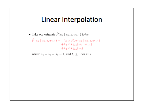 不过在MIT的NLP课程ppt中总结说有三种模式:Discounting, Interpolationg, Back-off