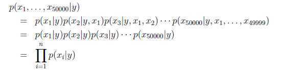 回到上边的垃圾邮件问题中来,对于邮件,我们大致上可以将每一封邮件看作是相互独立的,这样每一次我们取一封邮件就可以看作是一次随机事件,那么我们的可能性就会有2的n次方种可能性,这样我们处理起来参数过多,那也就没有什么实用价值.
