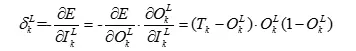 根据sigmoid函数的求导公式,并且对于误差进行偏导,我们就可以得到第L层的神经元的误差项: