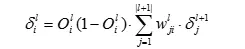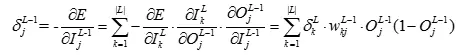 对于第L-1层的第j个神经元的误差项来说,由于每个神经元连接到输出层的每个单元,因此我们要对输出层的|L|个单元进行求和,从而得到了误差项的计算公式: