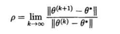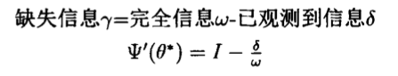 迭代算法的收敛率p是等于矩阵导数的最大特征根,Jacobi矩阵表示的是信息缺失的比例,所以p是一个可以有效的表示缺失信息的一个比例的标量,缺失信息的比例其实就是单位矩阵I 减去已经观测到的信息占完全信息的比例,其实就是: