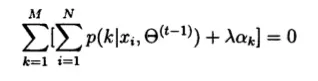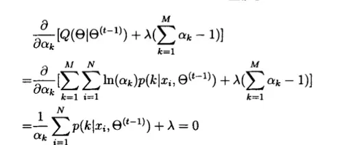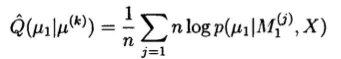这样M1与观察数据构成完全数据(M1(K),X),在M步中,对于函数Q的未知参数u1求导进行极大似然估计,想当是对在完全数据下的u1求极大似然估计,即: