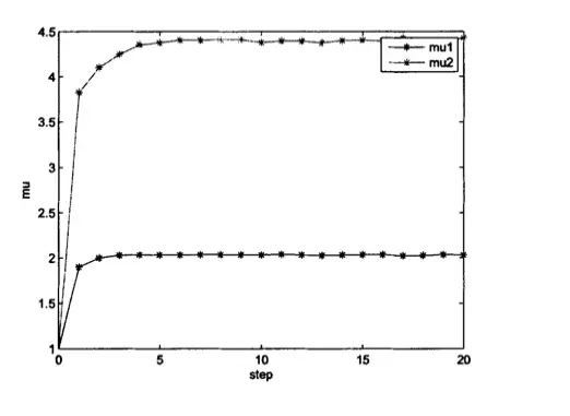 有兴趣的同学可以用MATLAB这样的工具试一试,实验室的小伙伴试验后表示在u1,u2初始值都为1,迭代20次以后,最终都会收敛,u1=2.0016,u2=3,9580