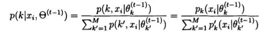 已知第i个观察x(i)来自第K个分支的概率为p,因此下边的式子可以写为: