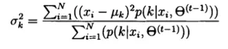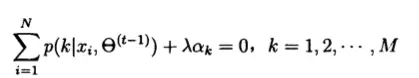 把上式中的累加求和去掉,,如果直接对对数似然函数求导来寻求极值是不可行的。但是如果我们知道每一个观测值甄具体是来自M个分支的哪一个分支的,则问题的难度就会下降很多。因此,从这个想法出发,我们引进隐含变 量y,它是这么定义的:设Y={y1,y2,,,,yN}且y(i)∈{1,2,…,M},i= 1,2,…,N。则当y(i)=k时,表示第i个样本观测值x(i)是由高斯混合分布的第k个分支产生的。因此,引入变量y后,对数似然函数可以改写成为: