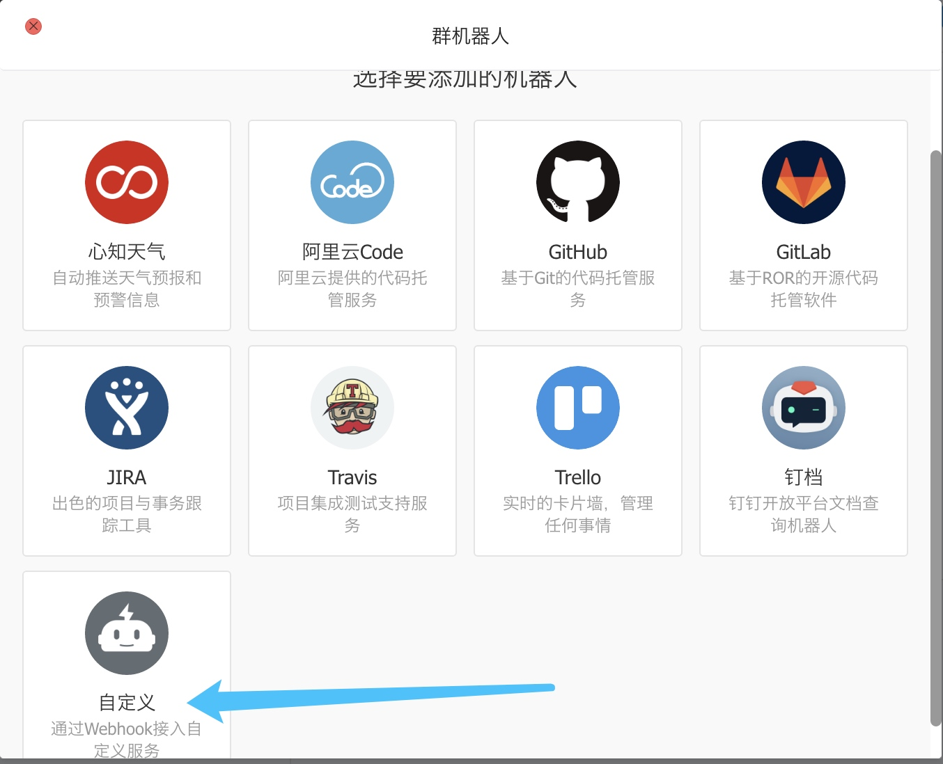 下面让我们来看看怎么如何创建群机器人的吧: