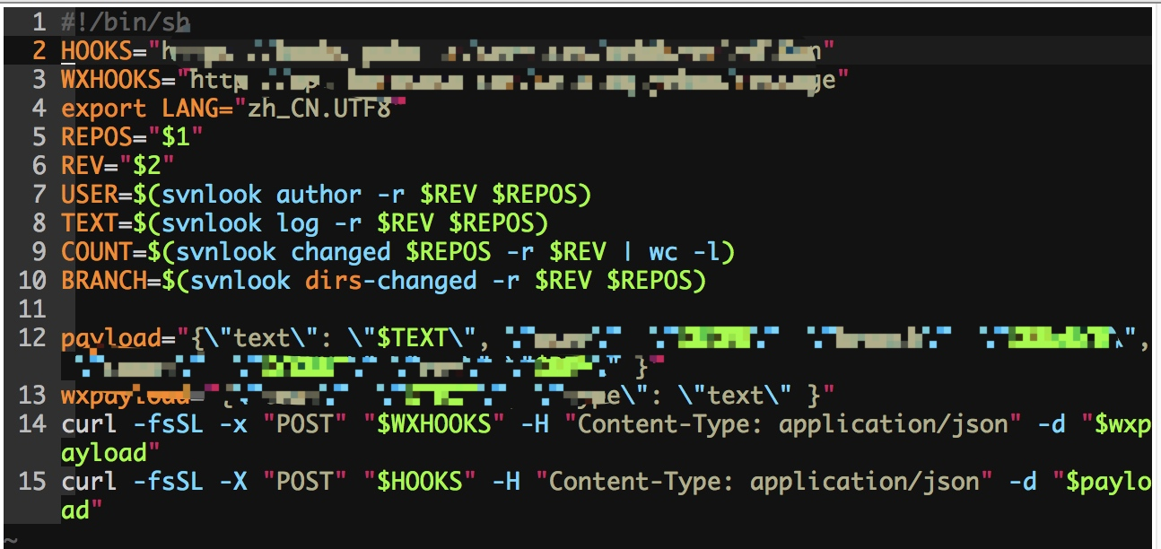这时候,只要在 post-commit 文件中,将 svn 的信息利用 POST 方法请求钉钉群机器人的链接即可。