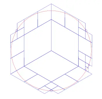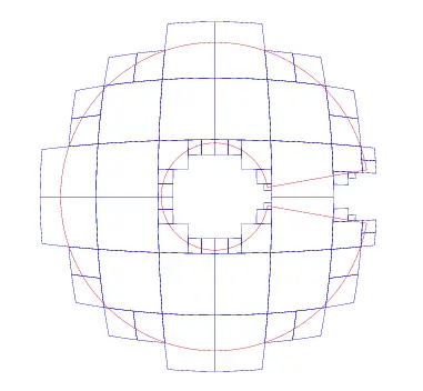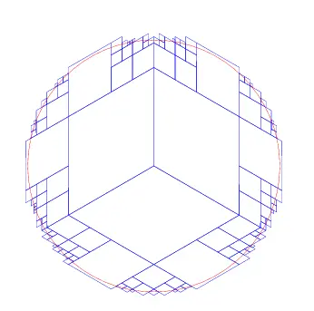 下面是一个半径为 10 公里的 cap,并且这个 cap 位于 3 个 face 夹角处,我们假设需要最大个数为 10 的 cell 去覆盖它。结果如下: