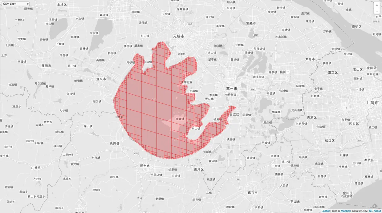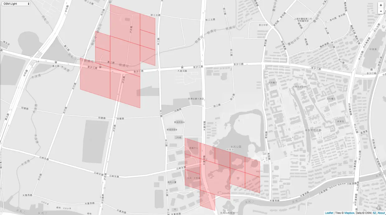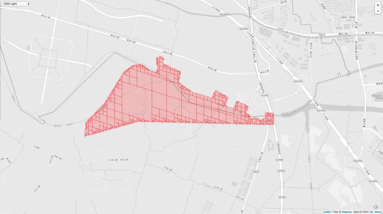 这其实是一个人的开源网站,s2map.com/,笔者是在这里填入程序算好的 CellID,然后显示出来的。这就相当于是 S2 的可视化研究展示工具了。