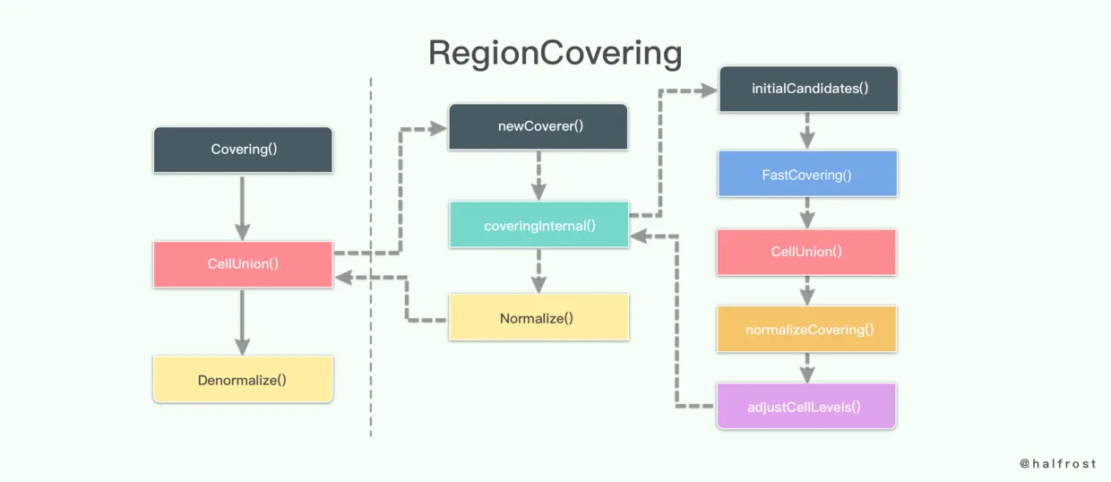 用一张图来表示 Google S2 对整个空间区域覆盖算法实现的全流程: