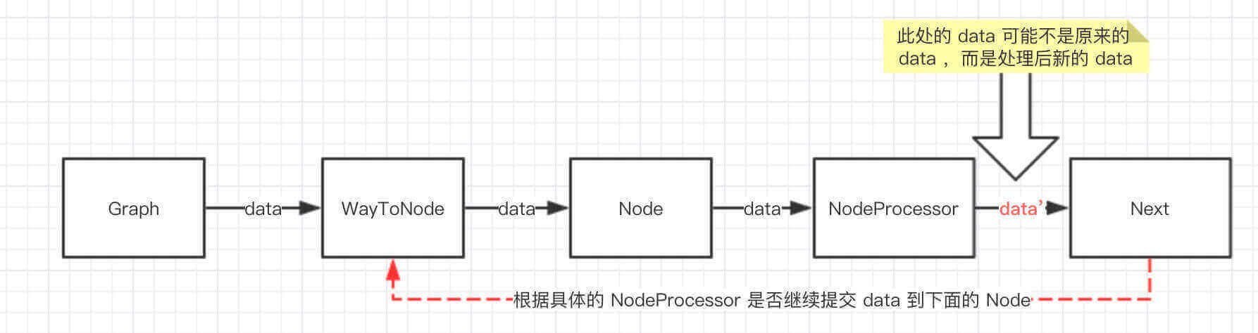 - 蓝色箭头:当 NodeProcessor 处理完成后,Next 逐个使用 NodeWay 数组提交给下面的 Node ,继续处理。