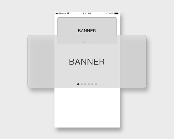 下面我来告诉你轮播图与手势的关系。试想:你的轮播图有 6 张 Banner,你要翻到第 4 张,无论是往前翻还是往后翻都要产生 3 次交互行为。而大部分产品的用户在界面停留的时间不会这么久,更不会看完你 Banner 的内容。甚至有研究表明,除了第一张 Banner 的点击率有 83% 之外,其余的点击率都非常低。