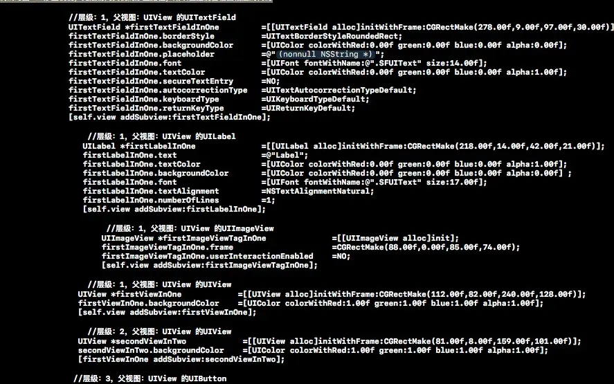 最近公司写了一新项目,写完项目总结时发现,大部分时间都浪费在纯代码写一些简单的控件上,用xib布局吧,还怕为后期的维护给自己挖坑,总是纠结到底用纯代码,还是xib呢,纠结来纠结去突然灵感乍现✧(≖ ◡ ≖) 为什么不能用xib布局,让它自动生成相应的代码呢,安卓就有这类似的功能- -!!想到就着手开干,写了一个自动生成的工具,废话不多说介绍下我自己写的小工具