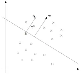 最后,给定一个训练集 ,我们也可以我们将对应 S 的几何边界 (w, b) 定义为每个训练样本的几何边界的最小值: