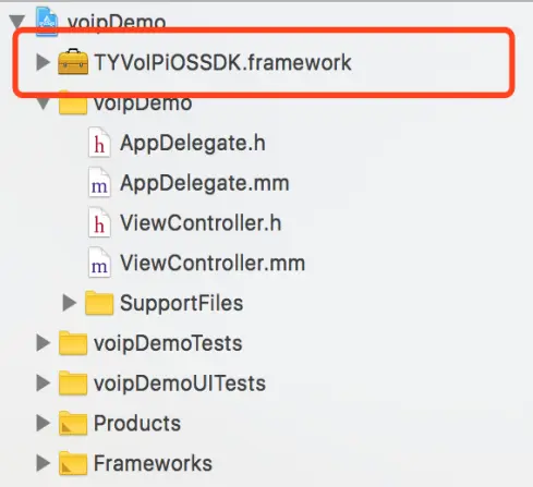 把TYVoIPiOSSDK.framework拿出来,该framework即为图鸭音视频SDK,导入到所需的iOS项目中,有时候导入framework工程没有自动添加该SDK的framework路径,检查方法:target—>Build Settings—>Search Path,在Framework Search Path中加入TYVoIPiOSSDK.framework的路径。由于SDK是与C++混编的,所以只要使用到SDK中文件的 .m 文件都需要改成 .mm 后缀名,如图5所示: