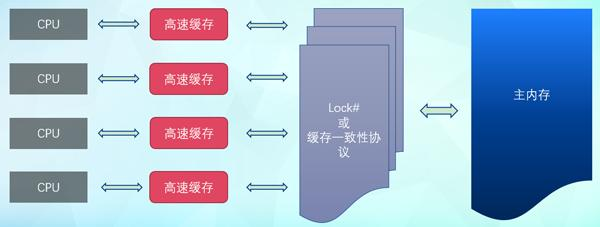 随着技术升级带来了缓存一致性协议,市场占有率较大的Intel的CPU使用的是MESI协议,该协议可以保障各个高速缓存使用的共享变量的副本是一致的。其实现的核心思想是:当在多核心CPU中访问的变量是共享变量时,某个线程在CPU中修改共享变量数据时,会通知其他也存储了该变量副本的CPU将缓存置为无效状态,因此其他CPU读取该高速缓存中的变量时,发现该共享变量副本为无效状态,会从主内存中重新加载。但当缓存一致性协议无法发挥作用时,CPU还是会降级使用总线锁的方式进行锁定处理。