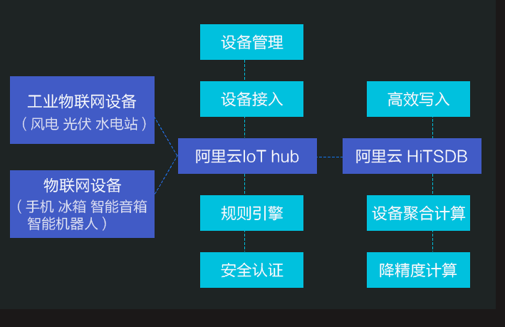 阿里云针对物联网企业遇到的这一系列问题,提供了HiTSDB +IoT 套件的一体化解决方案,能够支持物联设备快速上云,高效设备管理,数据安全,低成本海量数据存储,实时掌握设备状态,快速发现数据价值等,可以让更多物联网企业快速拥抱云计算。