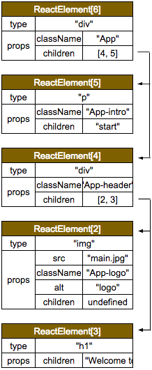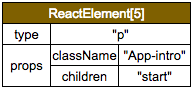 这里很重要的一点是App[ins].render()这个在文章开头定义的另一个函数。不像TopLevelWrapper[ins].render()会返回一个实在的ReactElement对象,App[ins].render()会在被调用时依赖React.createElement() 来动态创建ReactElement。这个我们马上就会看到了。