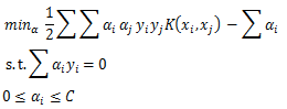 运用核函数后,最优化问题的目标函数和约束条件变为: