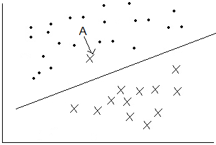 但是,到这里并没有真正得结束。考虑到现实生活中的真实数据,存在一些特异点即 outliers,这些数据点并不满足上面推导出的约束条件,如图 4 所示,图中点 A 就是 outlier 特异点。