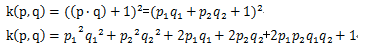 也就是将在二维空间(x1,x2)下线性不可分的问题转换成了在五维空间(z1,z2,z3,z4,z5)下线性可分的问题。