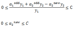 同样的道理,当 alpha2 更新后的值满足 0<alpha1<C 时可得: