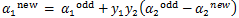 alpha1new = alpha1old + yI * yJ * (alpha2old - alpha2new)