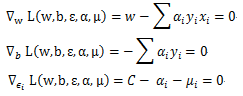 到此为止,已经将目标函数和约束条件转换成了极大极小化拉格朗日函数的问题了。首先求解关于拉格朗日函数的极小化问题。
