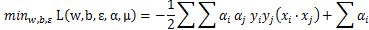 那么为什么是映射到高维后的内积运算呢?这是因为在上节中我们得到了如下目标函数: