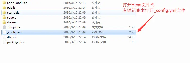 第四步、打开你一开始创建的Hexo文件夹(如F:\Blog\Hexo),用记事本打开刚文件夹下的_config.yml文件