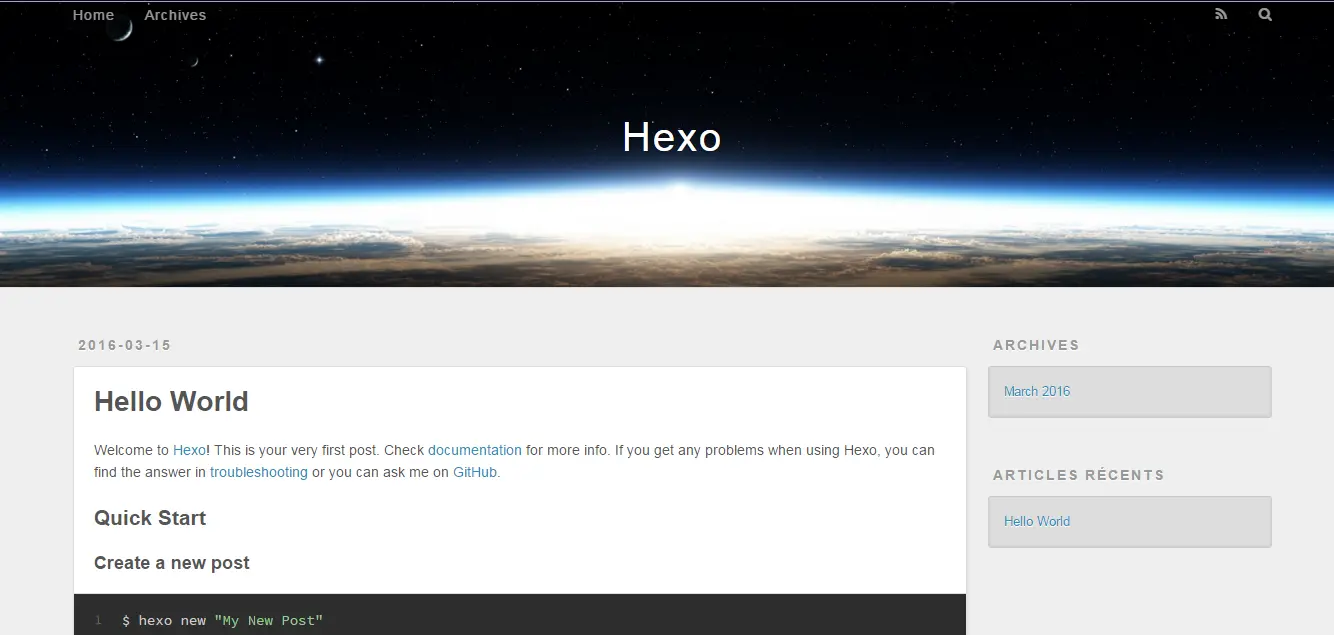 当然,也可以直接在\Hexo\source_posts中新建一个md文件,我就是这么做的。 写完后,推送到服务器上,执行以下命令即可在我们的站点看到新的文章。