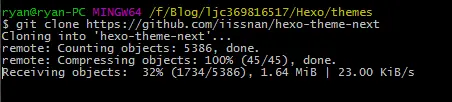git clone https://github.com/iissnan/hexo-theme-next(此处地址替换成你需要使用的主题的地址)