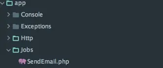 php artisan make:job SendEmail会在这里生成一个Jobs文件夹以及我们的任务类
