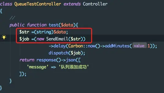 如何在控制器里新建一个job,并传递参数呢?请看: