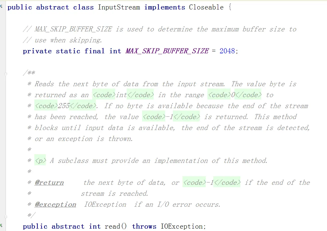 首先这是一个抽象类,有一个重要的read 抽象方法 等待他的子类去实现