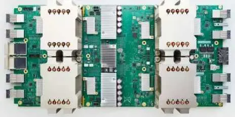 大约五年前,我们认识到深度学习会大大改变我们所需要的硬件种类。深度学习计算的计算量非常大,但它们有两个特殊的性质:它们主要由密集的线性代数运算(矩阵倍数、向量运算等)组成,它们对精度的降低容忍度很大。因此,我们可以利用这两个属性来构建能够非常有效地运行神经网络计算的专用硬件。我们为 Google 的平台团队提供了设计输入,由他们设计并生产了我们的第一代 Tensor Processing Unit(TPU):一种旨在加速深度学习模型推理的单芯片 ASIC(推理是使用已经过训练的神经网络,与训练不同)。我们的数据中心使用这款第一代 TPU 已经三年了,并且已经被用于 Google 的每个搜索查询、Google 翻译,Google 相册中的图片,AlphaGo 与李世石和柯洁的对战,以及其他许多研究和产品。六月份,我们在 ISCA 2017 上发表了一篇论文,表明这款第一代 TPU 比现代 GPU 或 CPU 同类产品快 15 倍 - 30 倍,性能 / 功耗约提高 30 倍 - 80 倍。