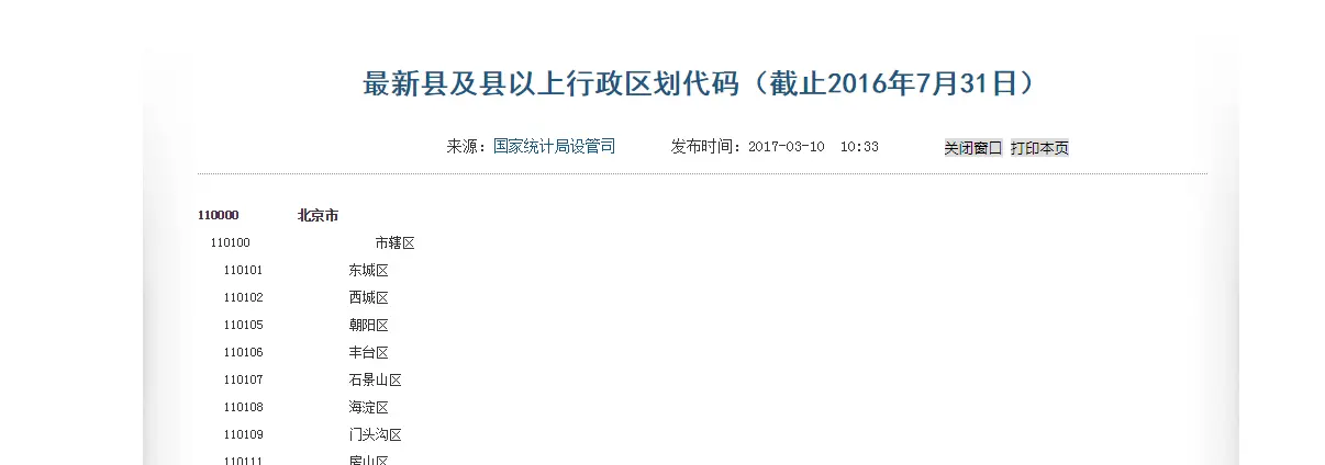 最新县及县以上行政区划代码(截止2016年7月31日)