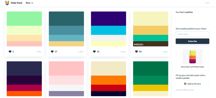 Color Hunt - Beautiful Color Palettes 用户可上传的配色方案