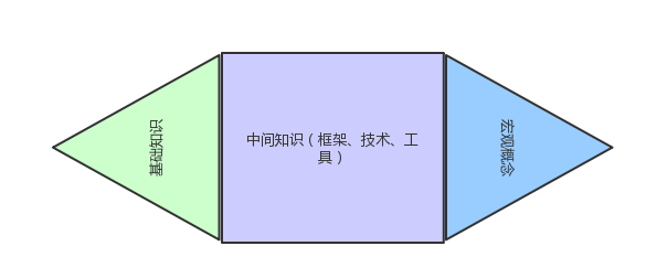 这个结构可以指导我们的阅读、学习方向,将重点精力放在基础知识和宏观概念上,用宏观概念去指导自己如何选择中间的空间和具体的技术,而基础知识不会经常改变,搞懂之后起作用的时间也比较久。