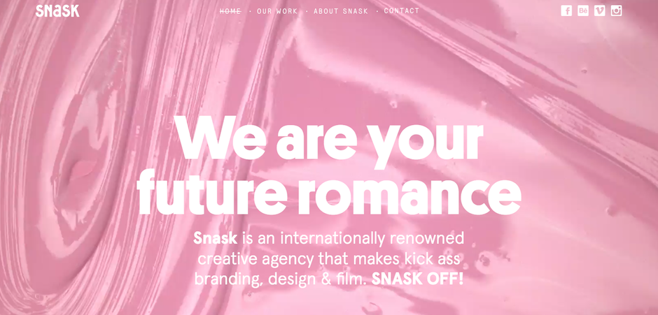 创意机构 Snask 的主页风格色彩明亮,斑斓,趣味十足。游客一眼便能看到品牌的创意力,同时清楚地了解他们的工作。