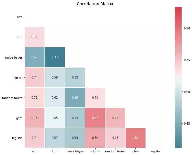 正如我们所料,集成击败了此前基准的最佳估计,但它仍然无法击败简单的平均集成。这是因为我们只对一半的数据进行基学习器和元学习器的训练,所以大量的信息丢失了。为了防止这点,我们需要使用交叉验证策略。