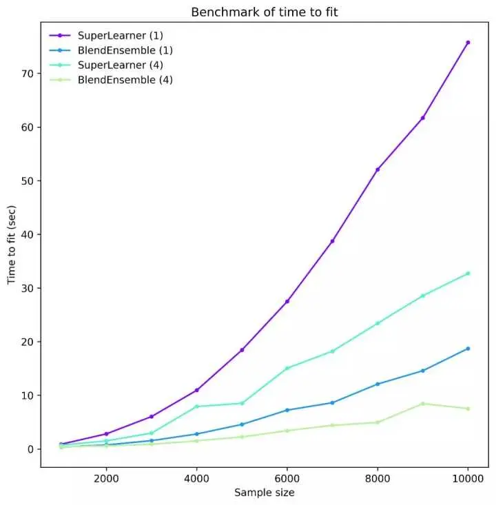 假设我们需要使用 10 折堆叠。这需要在 90% 的数据上训练所有基学习器 10 次,然后在所有数据上再训练一次。若有 4 个基学习器,集成需要花费的时间大约是最佳基学习器的 40 倍。