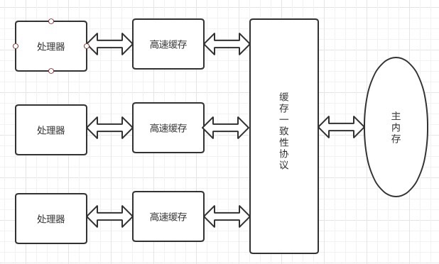但是写会内存后,如果其他处理器缓存的值还是旧的,再执行计算操作就会出现问题。所以在多处理器下,为了保证各个处理器缓存是一致的,就会实现缓存一致性协议,如下图: