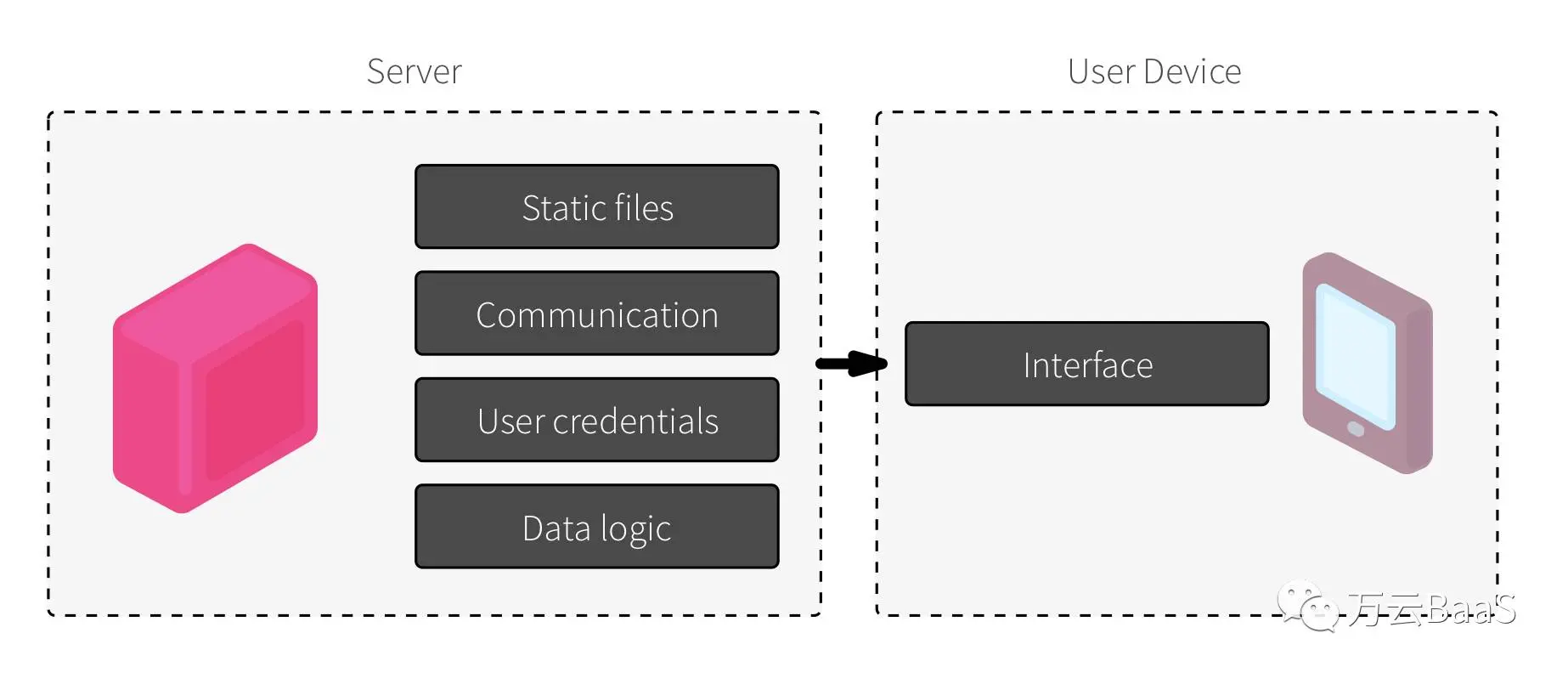 当前,Web应用中的服务器所做的工作已经远超当初的设想。除了提供静态网页,它们还保管私有信息,处理用户验证,同时还提供复杂数据分析与保存。而用户计算机(在Web技术刚被发明的年代,这种设备会被认为是超级计算机)所做的仅仅是加载信息,并展示给用户而已。