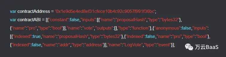 从初始solidity合约中,你可以看到LogVote带有三个参数,proposalHash,Pro和Addr: