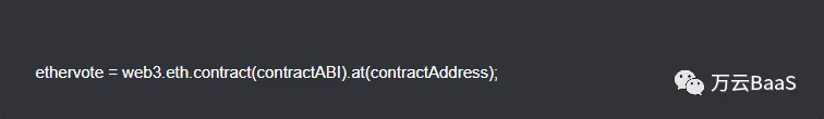 “Ethervote”是我们之前创建的对象,并且“vote”是它函数中的一个,对应着合约函数的一个: